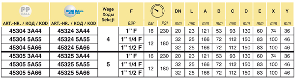 Arag 4-way Ball Valve series 453 - 12 bar / 180 PSI