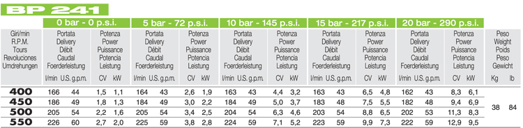 Comet pump BP 241 connection variants